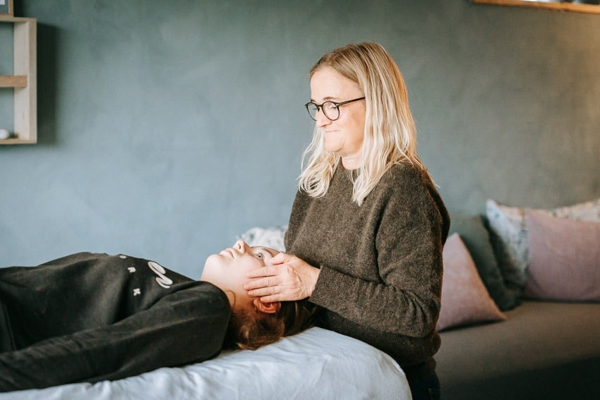 Når din teenager har det skidt, kan det også skyldes ubalancer i kroppen, som jeg kan arbejde med, mens de ligger afslappet på en briks, med et tæppe over sig.